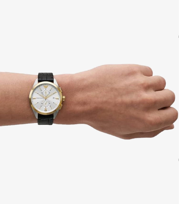 EMPORIO ARMANI CLAUDIO BLACK LEATHER STRAP CHRONOGRAPH QUARTZ WATCH AR11498