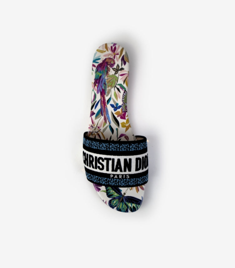 CHRISTIAN DIOR BROWN MULE DWAY TEXTILE SLIDES