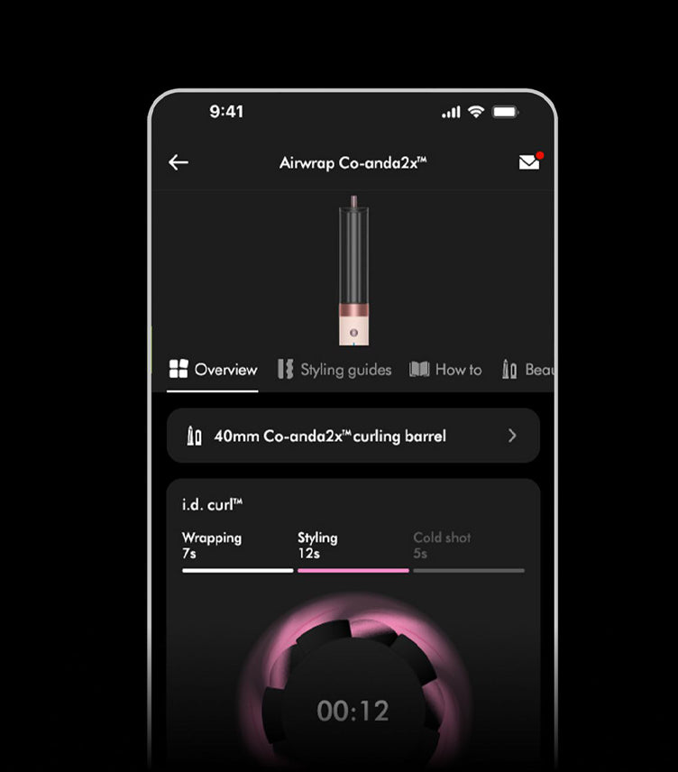 Compatible with the MyDyson™ app. Create a quick and easy hair profile by answering six questions about your hair type and length. For an automated styling sequence, tailored to you.