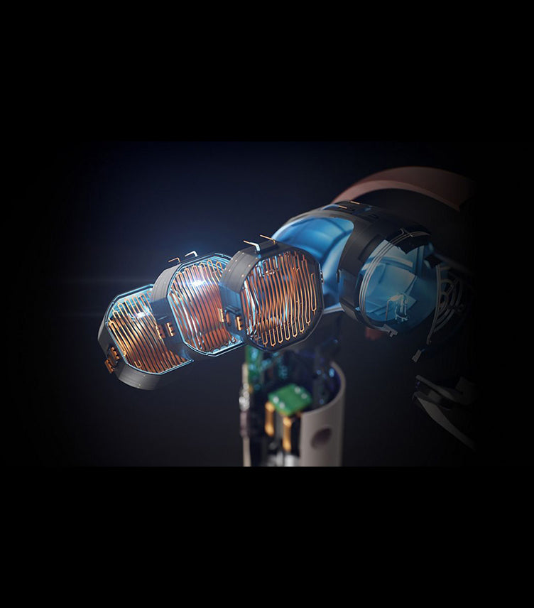 Our most powerful¹ and fastest drying – the Dyson Hyperdymium™ motor produces high-pressure airflow. Spinning at up to 110,000rpm, forming a jet of controlled air. Propelled through the ultra-responsive Streamlined flow heater, 10 heater foils are placed in the curve of the device for air to travel through.