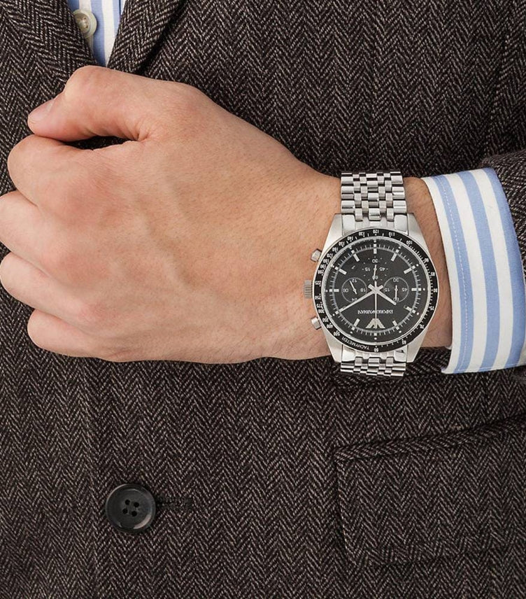 EMPORIO ARMANI CHRONOGRAPH QUARTZ STAINLESS STEEL BLACK DIAL WATCH AR5988