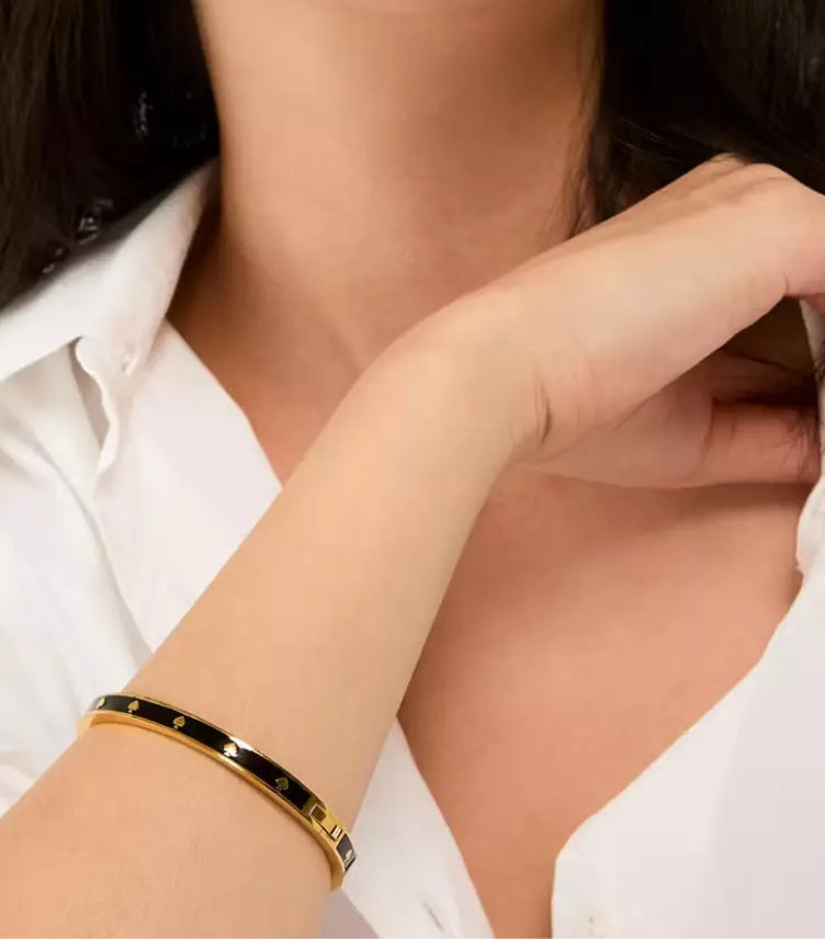 Add a hint of elegance & style to your outfit with the Kate Spade Enamel Hinged Bangle Bracelet. Perfect for layering with your other bracelets.