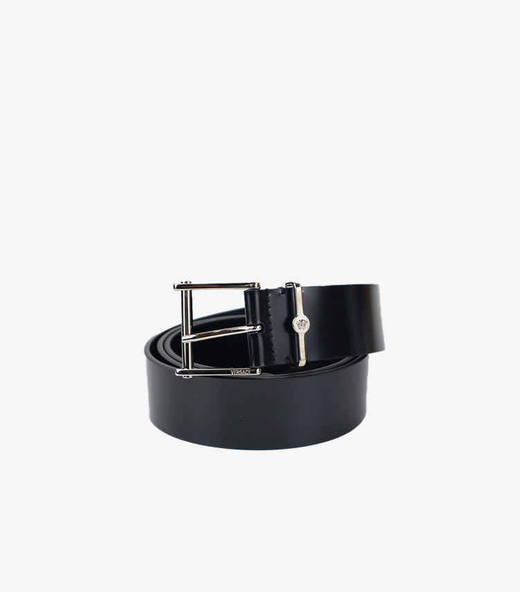 VERSACE MEN’S CLASSIC LEATHER BELT – BLACK WITH SIGNATURE METAL BUCKLE