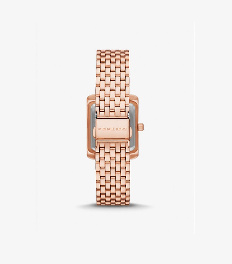 Side panels of understated pavé crystals add shine to the rectangular face of our petite Emery watch. The polished beveled strap is made of rose gold-tone material , while the dial features Roman numeral indexes for a luxurious finish. Glamorous enough to pair with evening looks yet understated enough to complement a simple T-shirt and jeans, this is a timeless style you’ll never want to take off.
