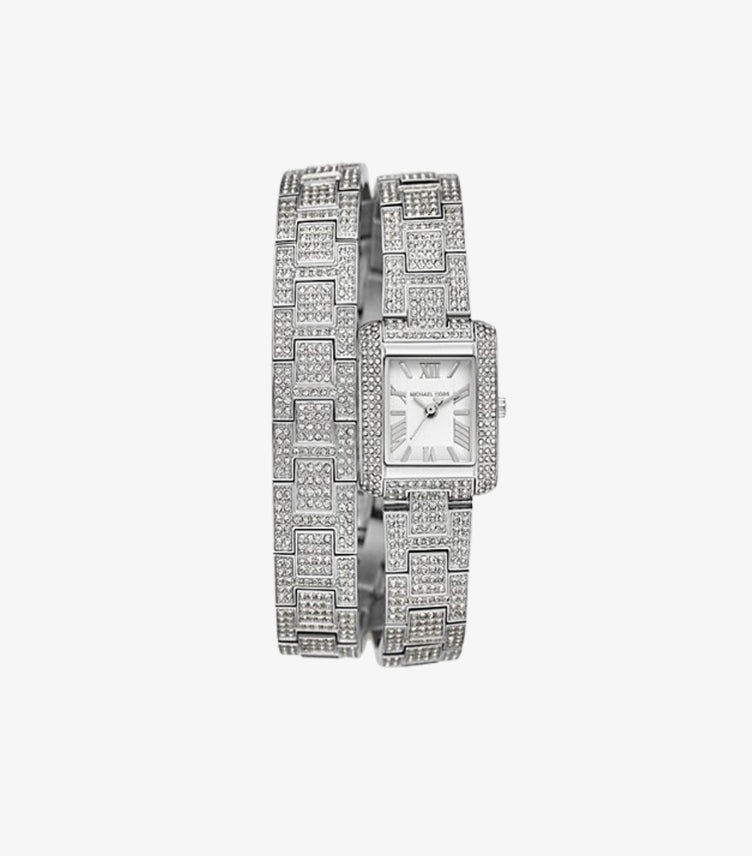 MICHAEL KORS PETITE EMERY PAVÉ SILVER-TONE DOUBLE WRAP WATCH MK4836
