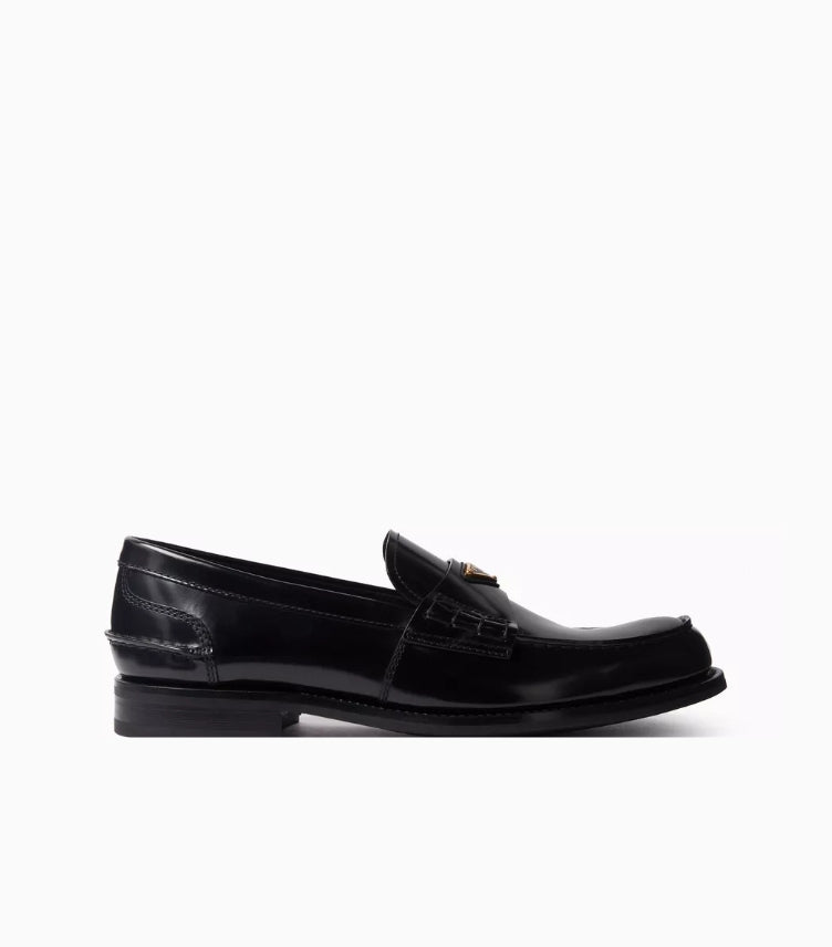 PRADA TRIANGLE LOGO LOAFERS IN BRUSHED LEATHER